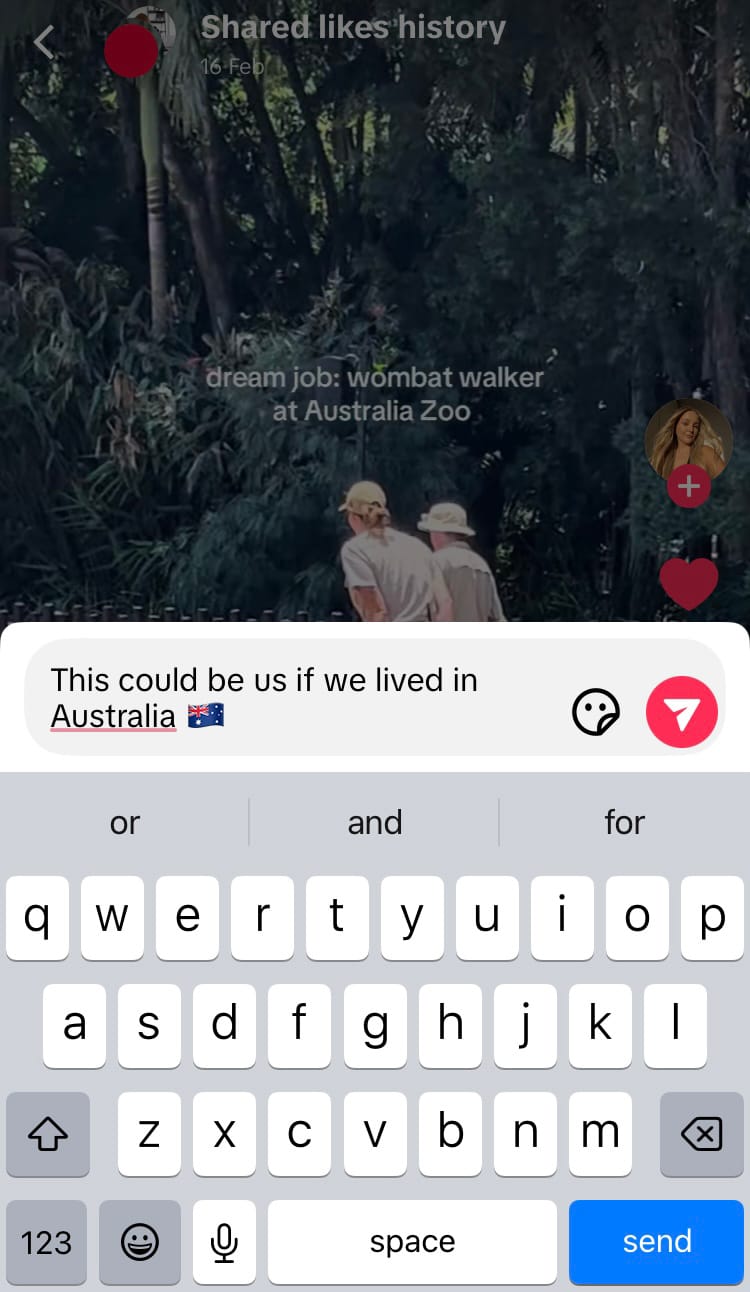 Once a shared feed has been created users can like, comment on, favourite and share each TikTok post as usual, however there are some additional features to explore within the shared feed. The features that are available within a shared feed make it easier to communicate and feel connected with your shared feed friend.