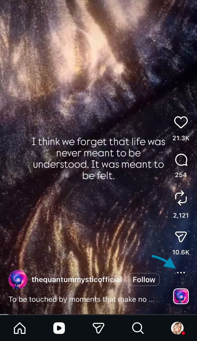 - Navigate to the Reels tab using the navigation bar at the bottom of the screen.
