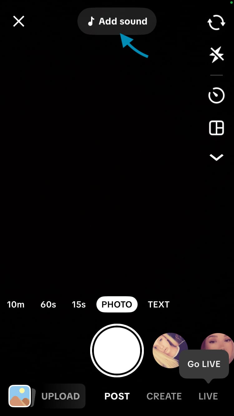 - Choose ‘Add sound’ at the top of the screen.