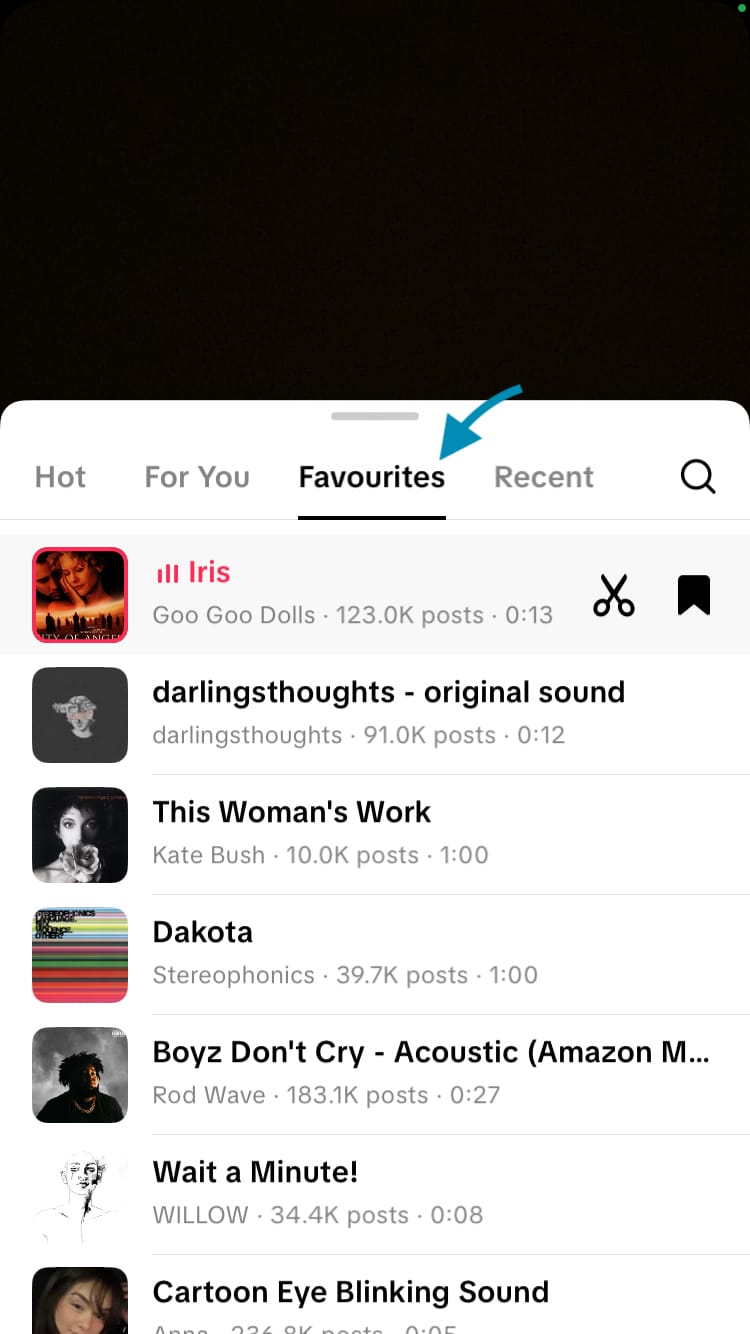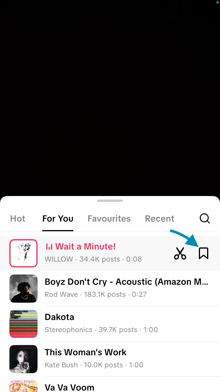 Favourite a sound while creating content on TikTok