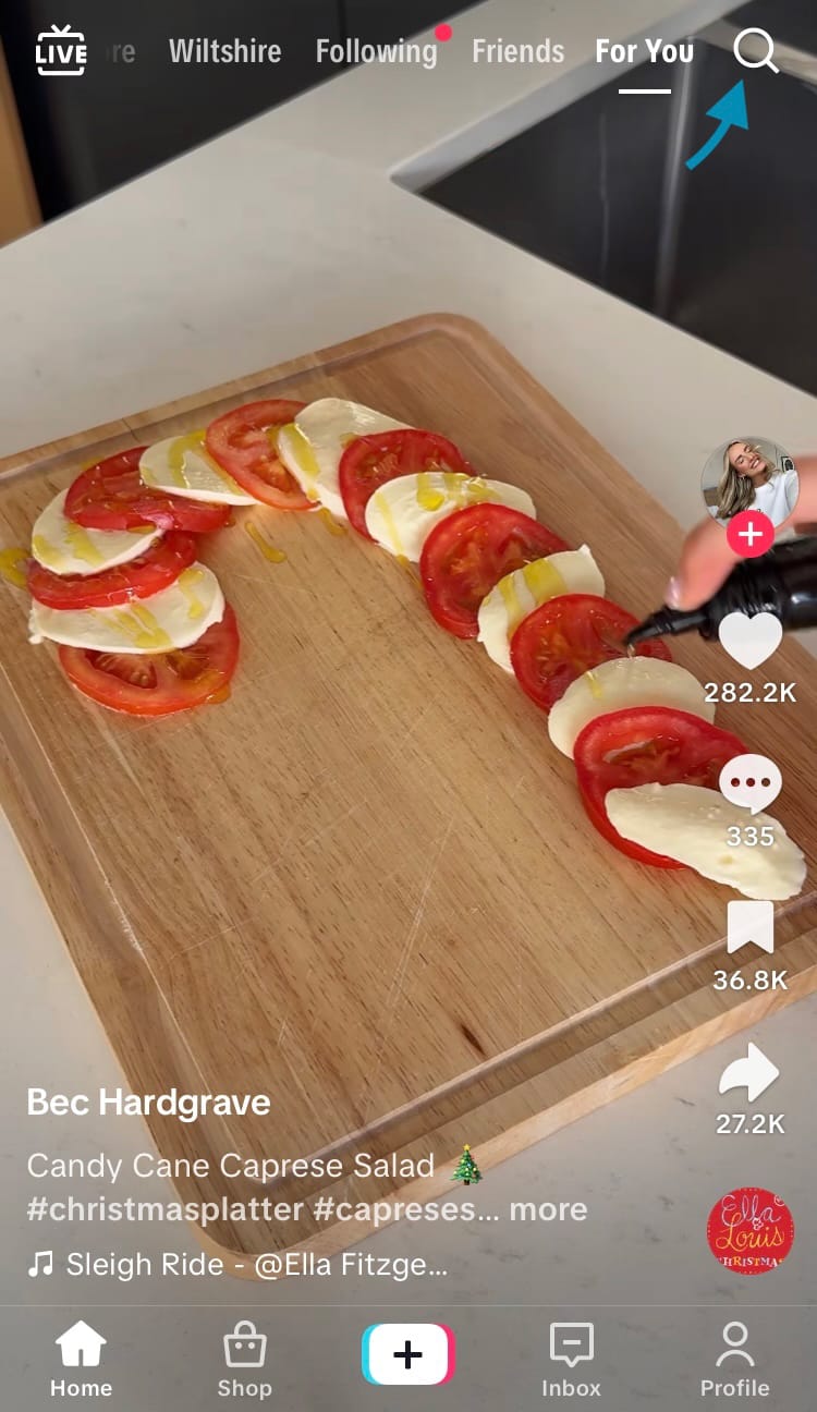 - From the TikTok home feed, tap on the magnifying glass icon in the top right-hand corner of the screen.