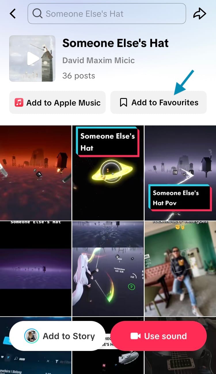 Favourite a sound from a profile on TikTok