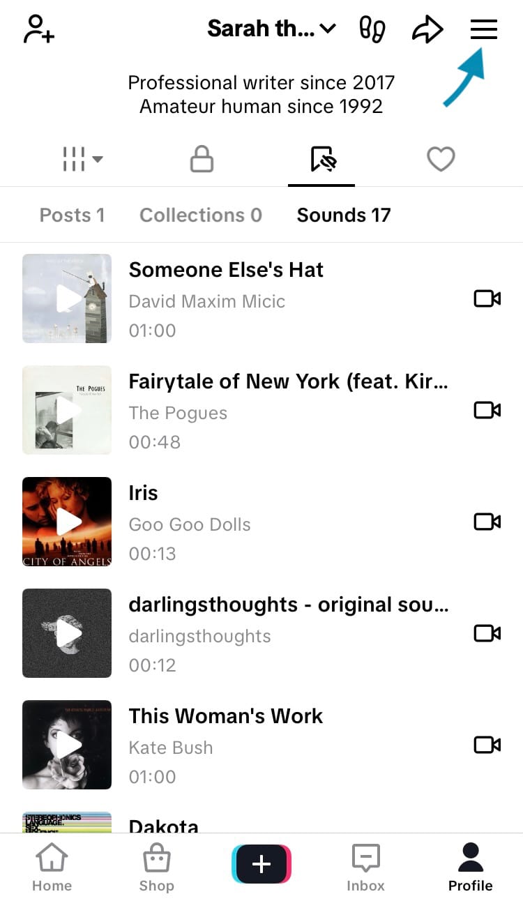 - Navigate to your TikTok profile and choose the 3-bar menu in the top right-hand corner of the screen.