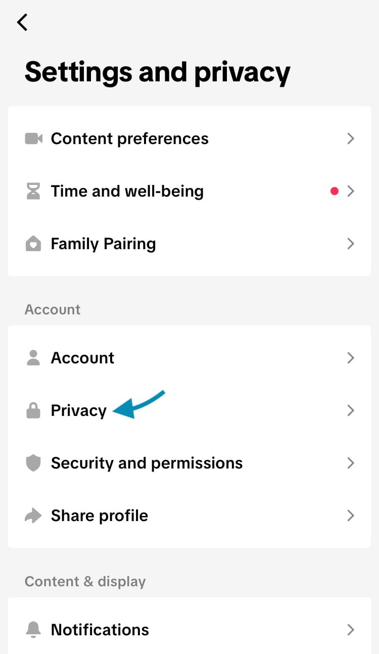 - Tap on ‘Privacy’.