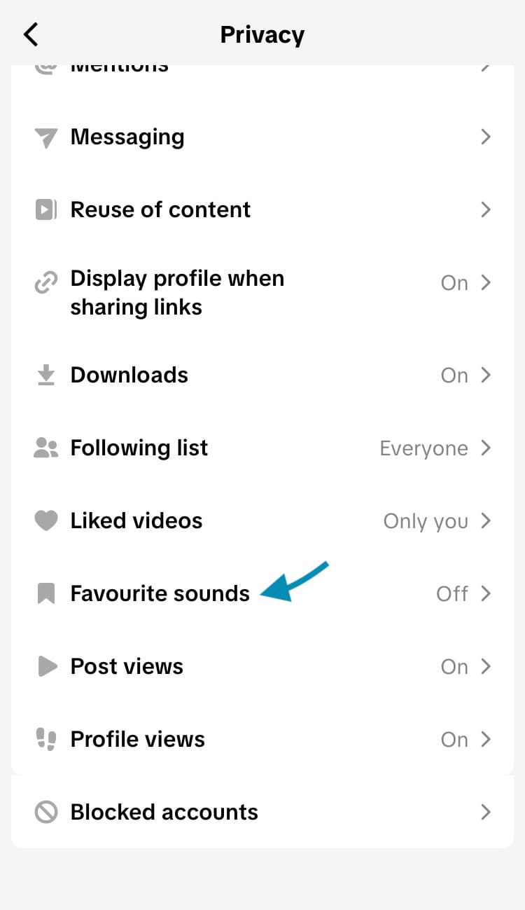 Change your favourite sounds privacy settings on TikTok (Steps 4 & 5)