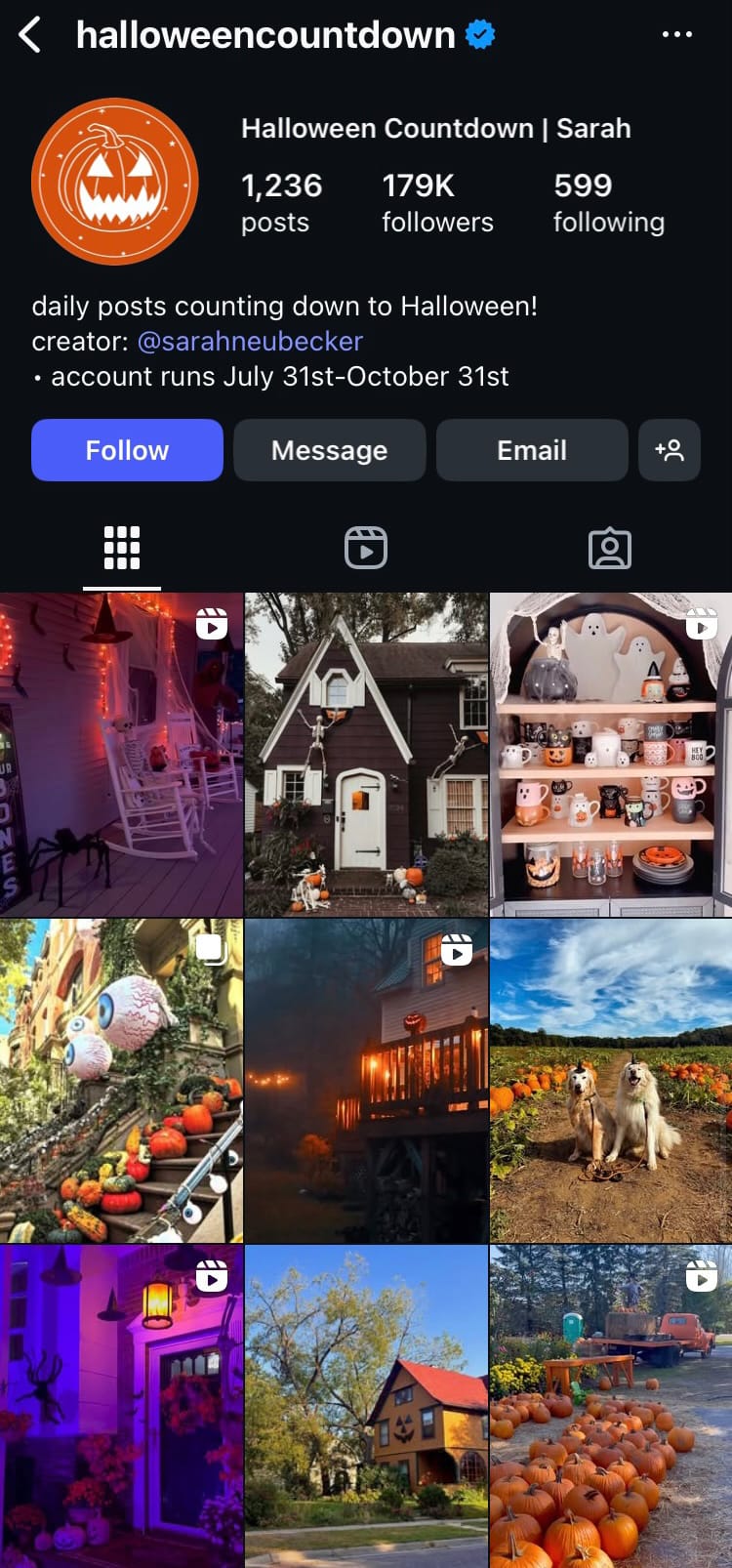 Draw anticipation from the breath of your victims by counting down to the cruelest day of the year. The killer Instagram account @halloweencountdown is dedicated to the domination of demon season, with plenty of eerie and enchanting inspiration for you to pilfer.
