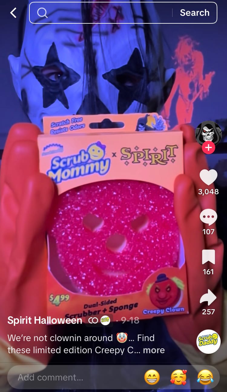 Create a criminal collaboration that claws at the mind. The evil geniuses at @scrubdaddy joined forces with the dark souls of @spirithalloween for a collab so gruesome it should be illegal. They put all the worst ingredients into the cauldron to conjure up this creepy clown. No-one will be able to sleep on snapping up this limited edition baddie.