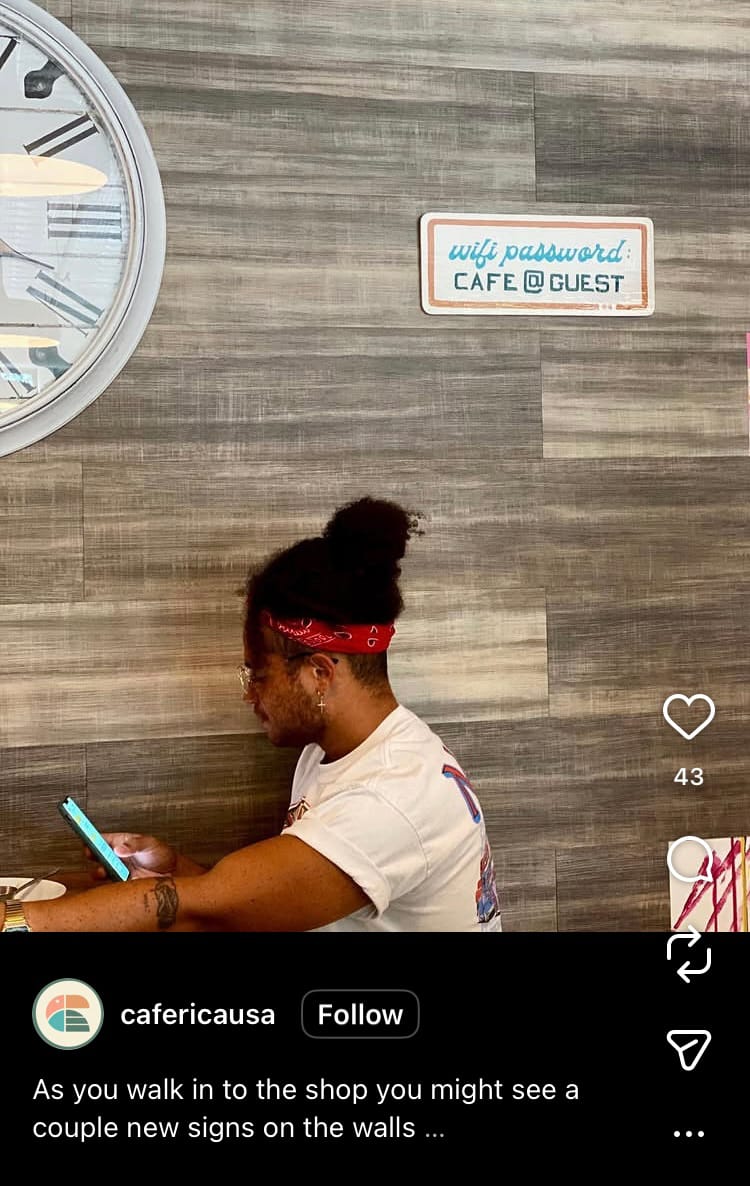 Wherever and whenever possible, make free WiFi available to your customers. This will help people share your location while they’re still there and allow them to share posts they’ve snapped while at your business in an instant.
