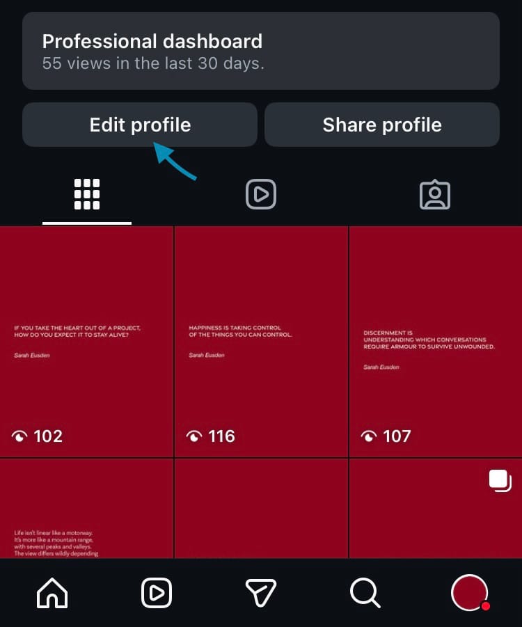 - Go to your profile and tap the ‘Edit profile’ button at the top of your profile.