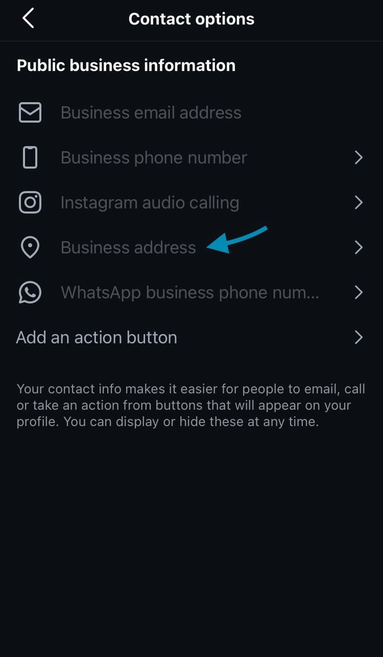 - Tap ‘Business address’.