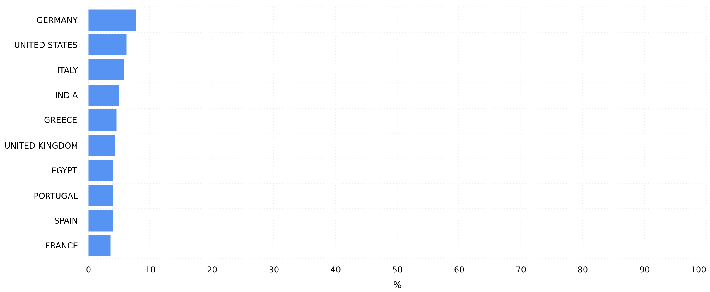 The countries of Followers gained during the selected date range.