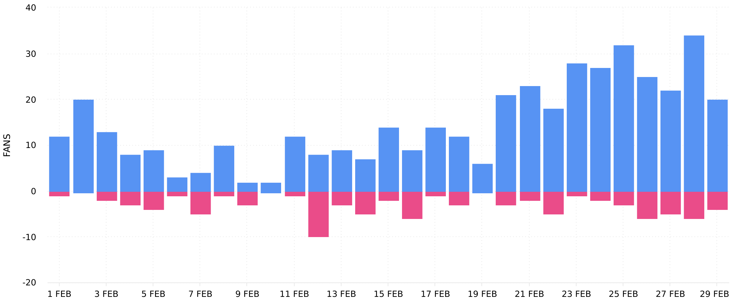 Historical data for Follower Change is available for up to two years.