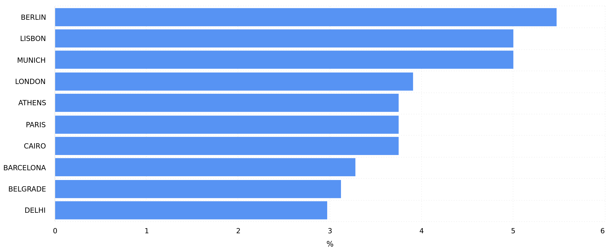 The top 10 cities of Followers gained during the selected date range.