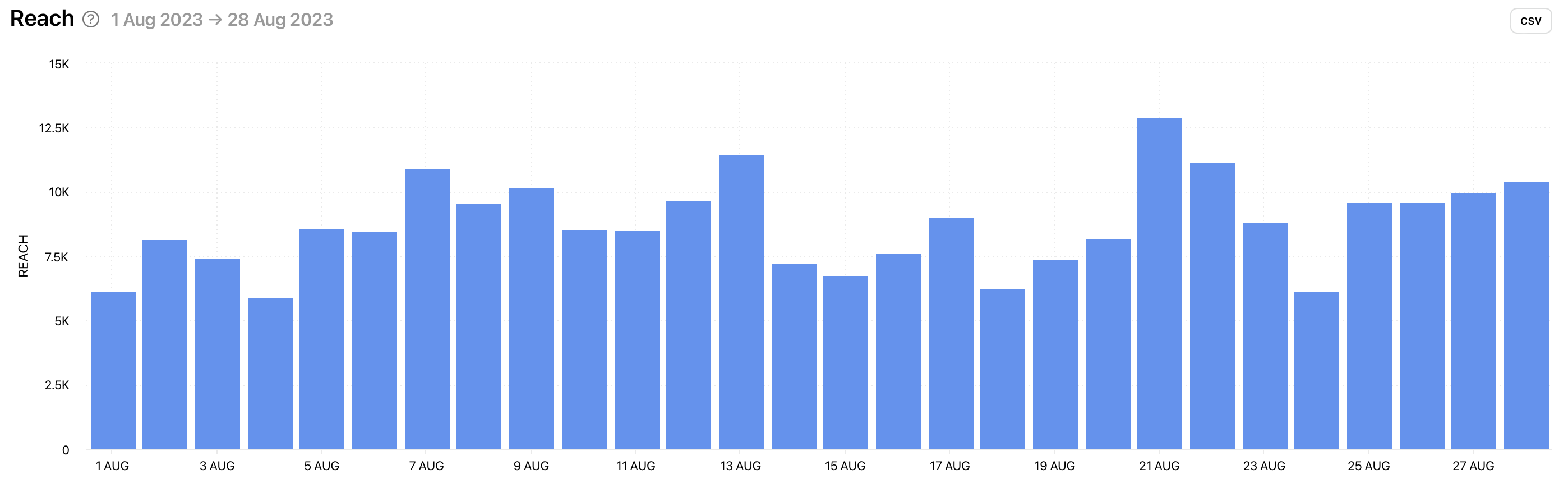 The Total Reach number is available only for date ranges that are less than 93 days. Since Reach measures unique accounts, calculating Total Reach for longer timeframes by simply summing up daily Reach values would result in counting the same user more than once, and a non-unique Reach.