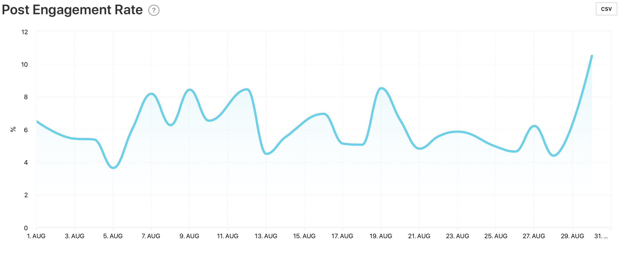 The graph shows the average Engagement Rate of Posts published during the selected date range.