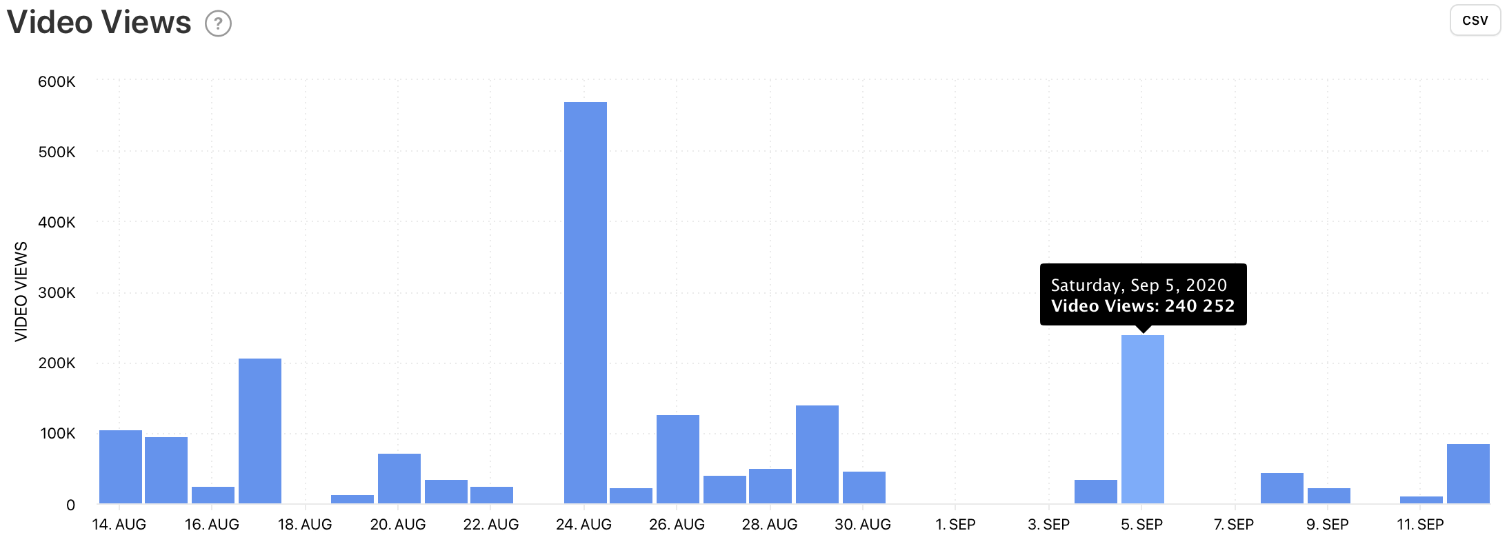 The number of times Videos published during the selected date range were played for at least 3 seconds, or for nearly their total length if they're shorter than 3 seconds.