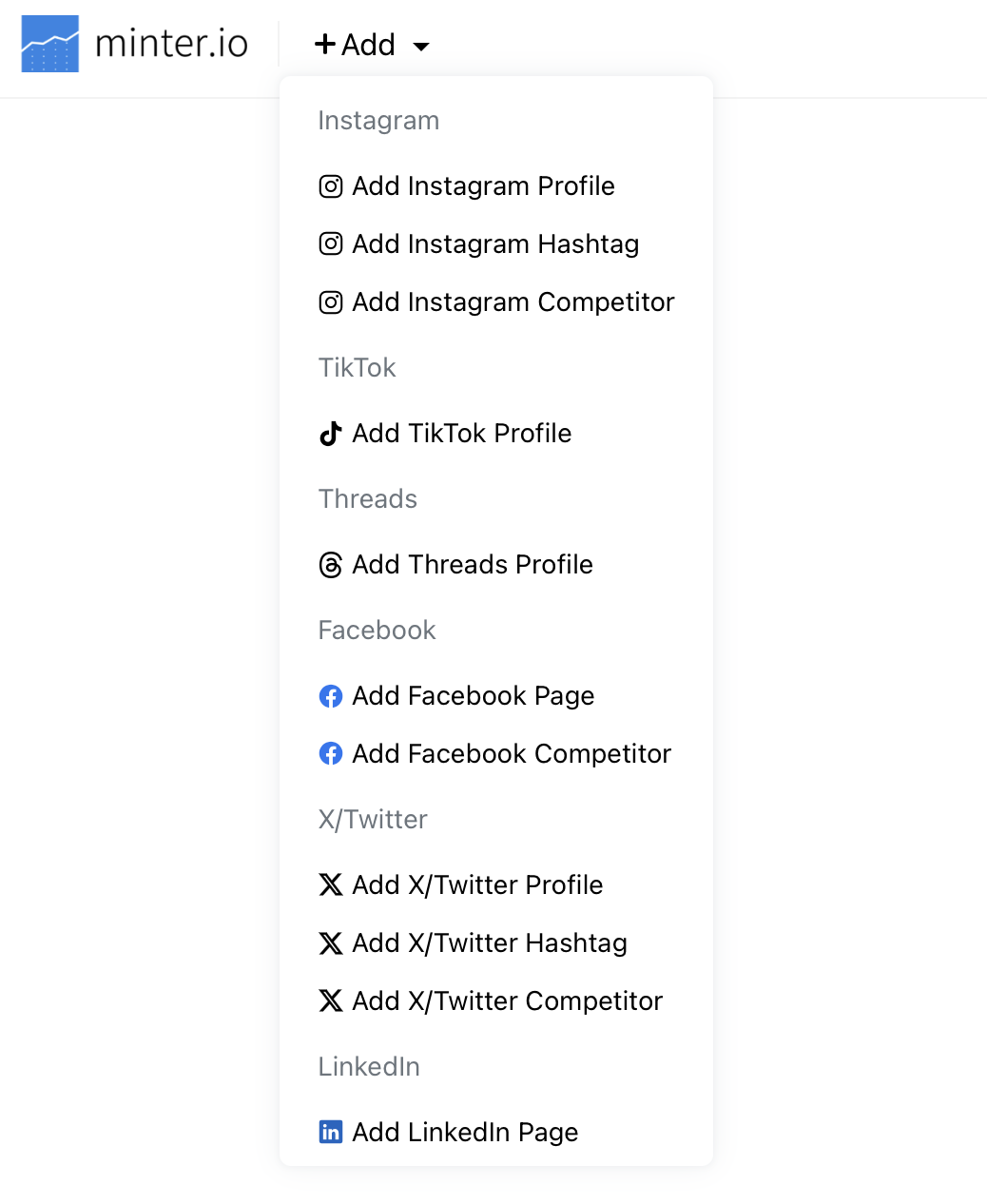 To add a new social profile to your Minter.io account: