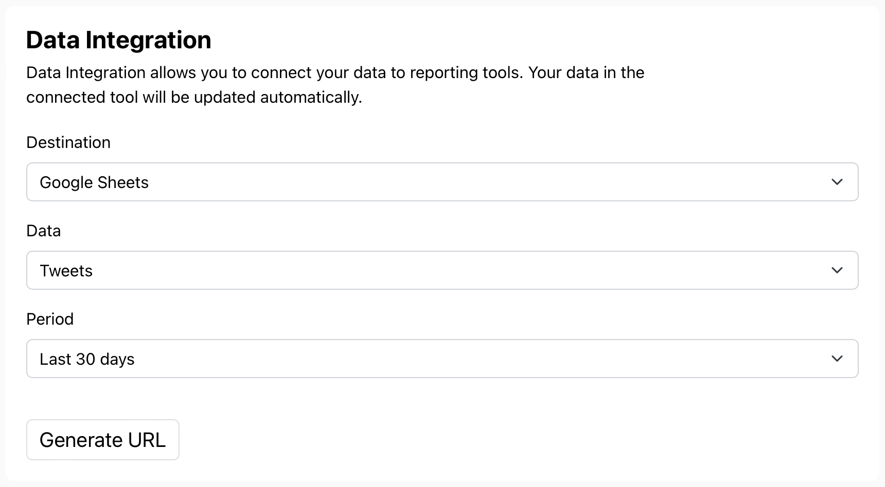 3. Select Google Sheets from the Destination drop-down. Then, select the data and period you'd like to connect.
