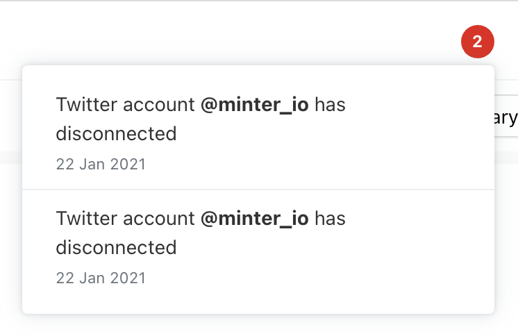 We've added a new Notification area to your Minter.io account to make it clearer which of your social profiles got disconnected and when.