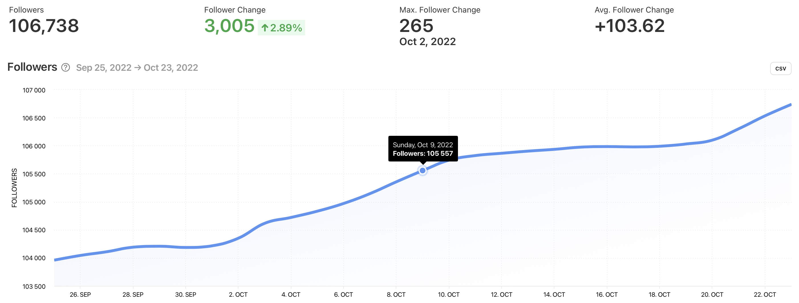 TikTok follower data can only be tracked from the day you connected your account to Minter.io. For existing TikTok reports, follower data will start from October 23, 2022.