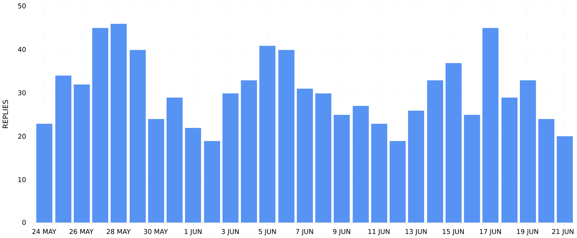 The number of Replies received during the selected date range across all Posts.