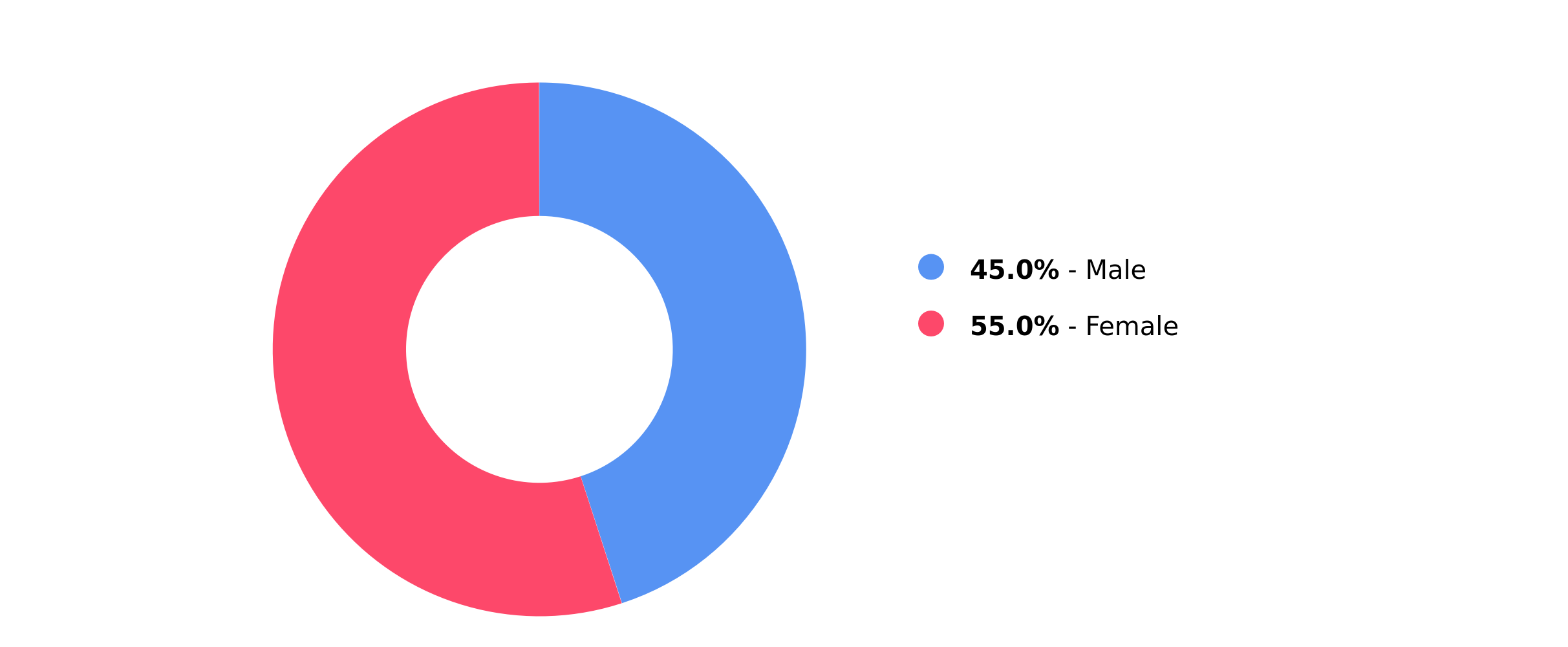 The gender distribution of Followers gained during the selected date range.
